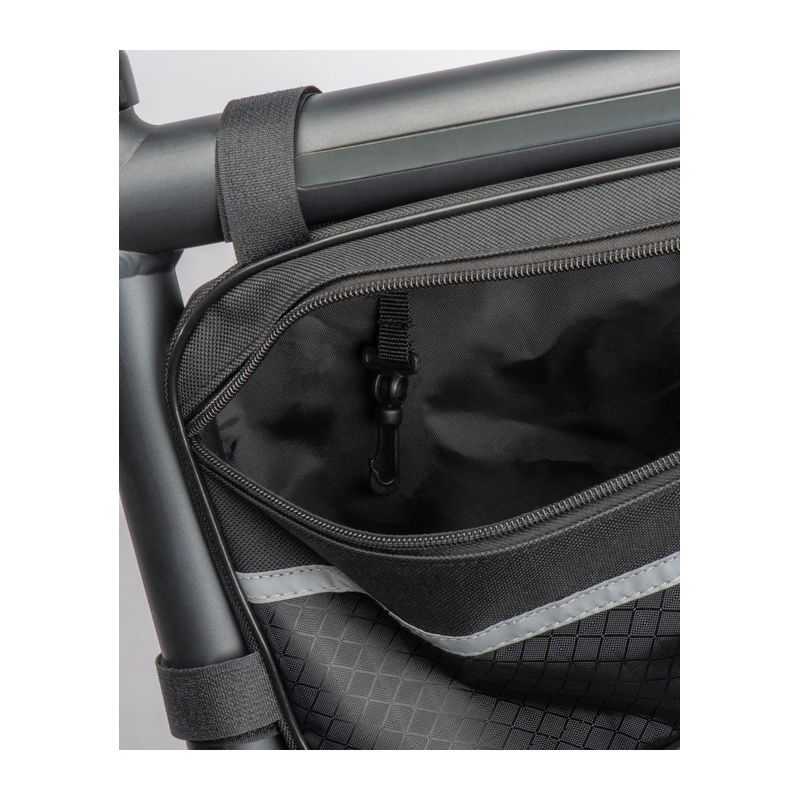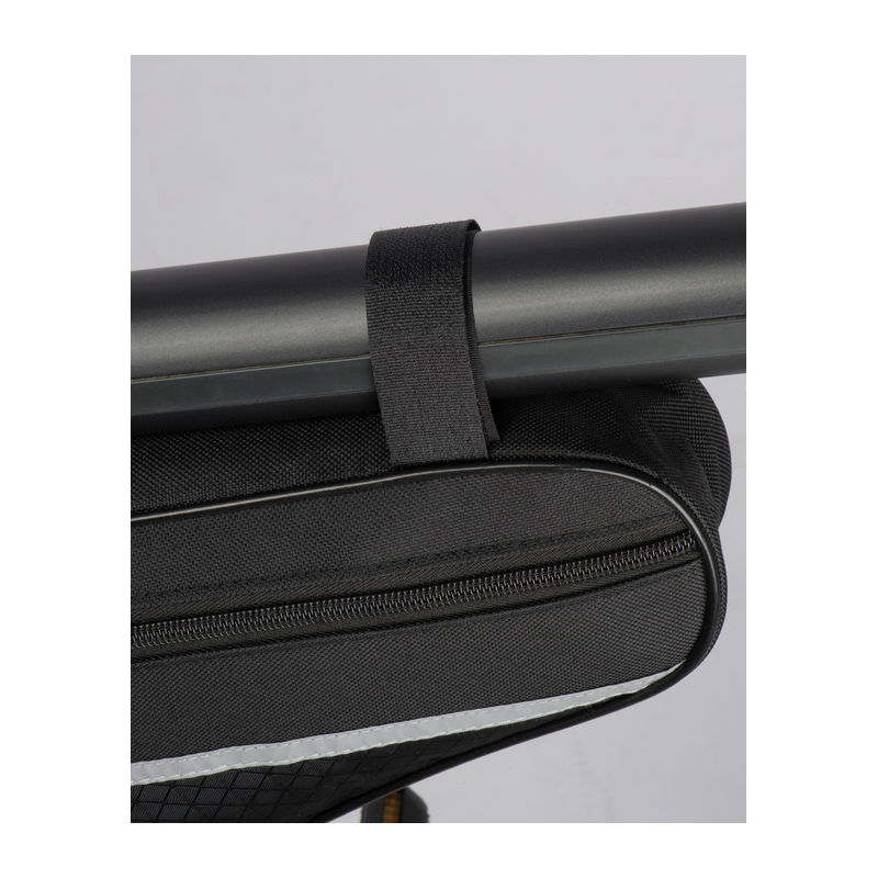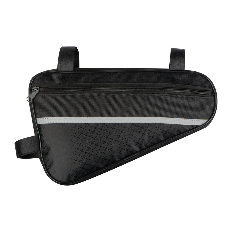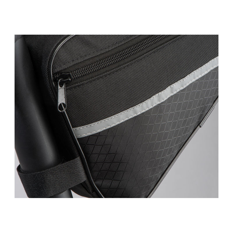 Bicycle bag made of durable 600D polyester with reflective strips. The bag can be easily attached to the middle frame bar using the brackets and offers enough space for all important items. We will print your logo on the bag.