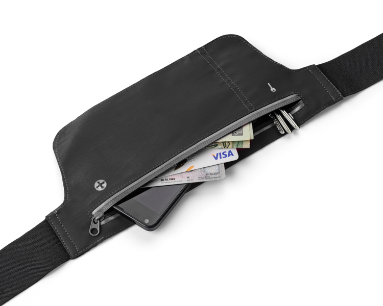 A small yet practical hip bag. Very useful during jogging and travelling. The bag has a single zipped pocket with headphone access. It is finished with reflective tape that provides more visibility after dark. An adjustable, wide strap allows for individual and comfortable circumference adjustment.