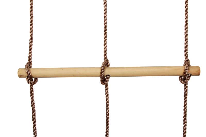 A way up to the tree house, a challenge on monkey bars or just a playful training of the motor skills – this fantastic rope ladder with sturdy wooden bars and strong synthetic ropes chases away boredom for hours. Metal rings provide a secure hold and a quick fastening.