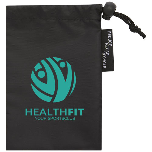 Yoga strap made from recycled polyester (RPET). Using RPET in the production of yoga straps helps reduce waste and promote environmental sustainability. By utilizing recycled plastic materials, the creation of new plastic is minimized, making it a more sustainable choice. Size: 181 x 3.8 cm. The pouch is also made of RPET.