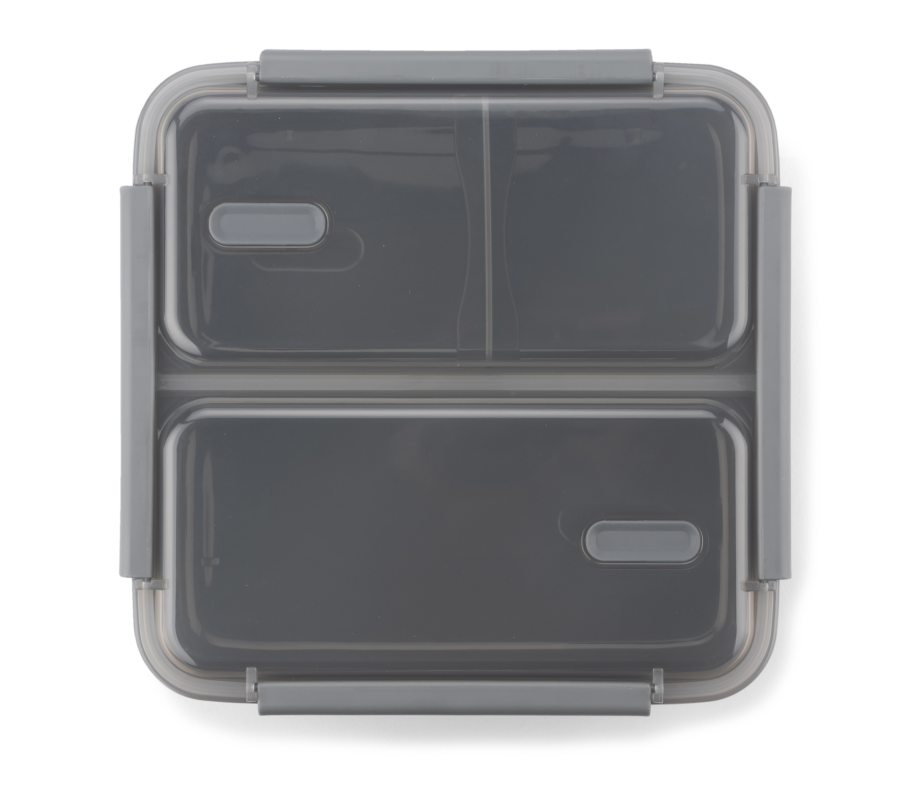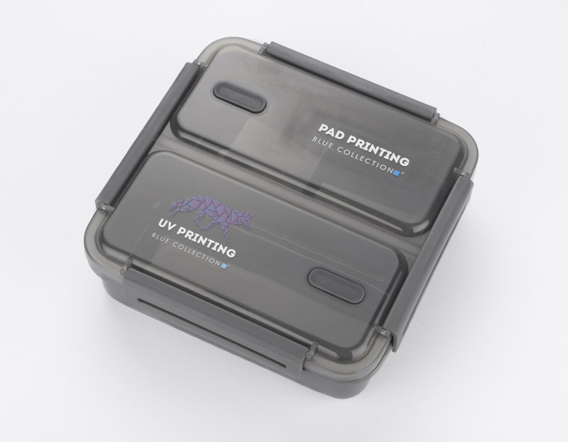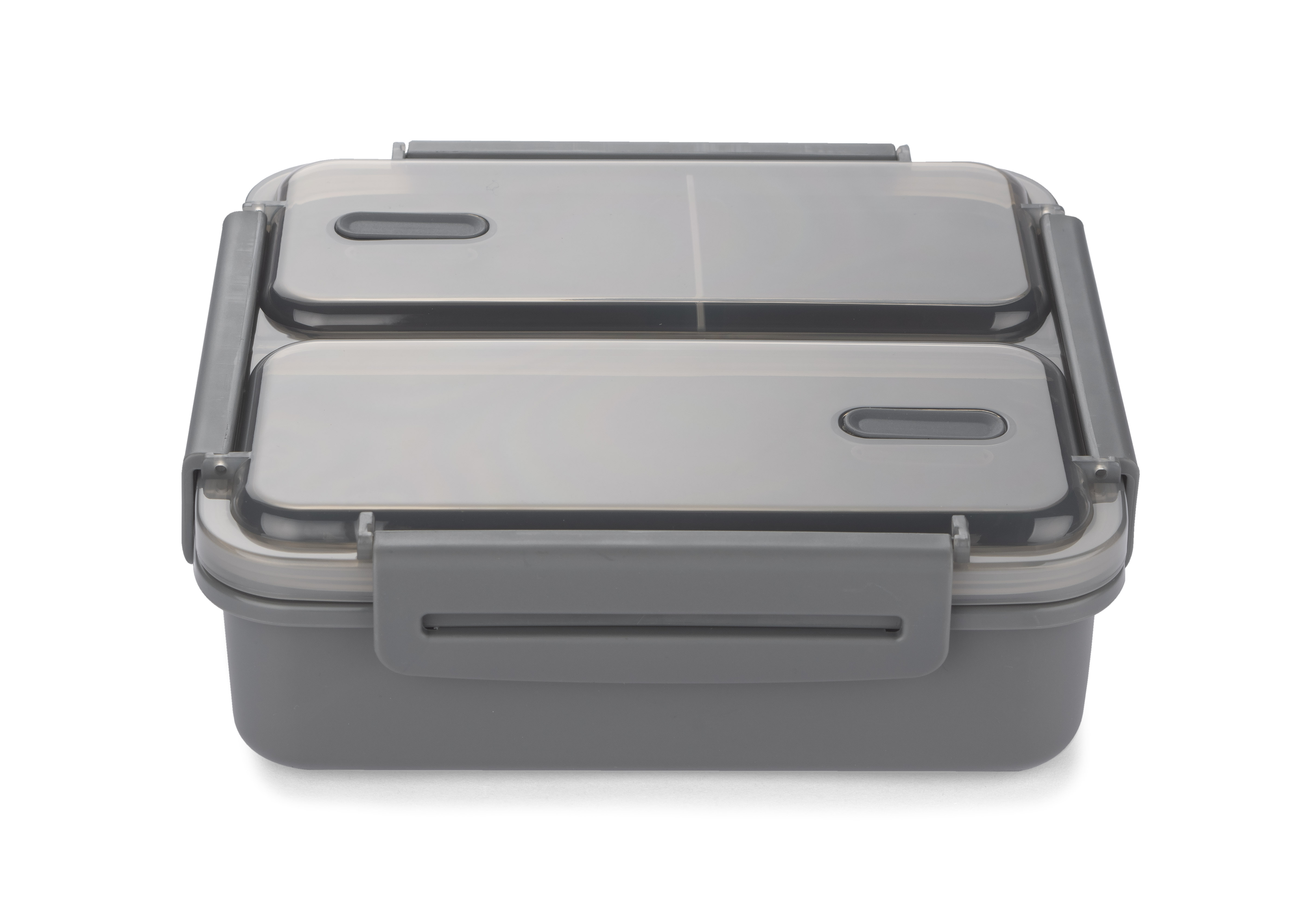 The DUO lunch box has 2 main compartments and an additional removable separator. It has a seal in the lid. Closed with four latches. The capacity of the 1100 ml container will fit a large lunch. Made of polypropylene material safe in contact with food.