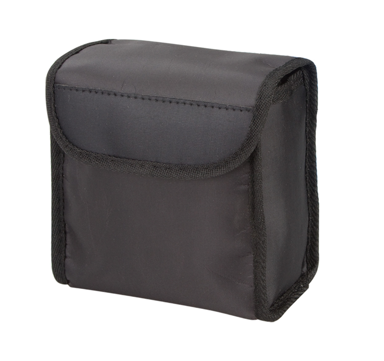 Plastic binoculars with cleaning cloth in nylon pouch, with 4x magnification.