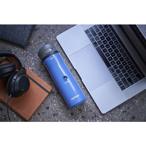 Double-walled, vacuum-insulated stainless steel Contigo® water bottle with AUTOPOP™ technology. When closed, the drinking spout is protected against dirt and microbes. The bottle is only suitable for cold, non-carbonated drinks. These stay cold for up to 24 hours. Thanks to the leak-proof design, you won't spill anything in your car, on your desk or wherever you are. The integrated handle makes the bottle easy to carry. Fits most cup holders. The bottle and lid are top-rack dishwasher-safe. Washing by hand is recommended to preserve the imprint. Capacity 590 ml. STOCK AVAILABILITY: Up to 1000 pcs accessible within 10 working days plus standard lead-time. Subject to availability. Contigo: The best in quality, design and technology. Immediately recognisable by its sleek and stylish design, strong and solid. The innovative water bottles and thermo cups are odourless, tasteless and BPA-free. The drinking bottles are operated one-handed and guaranteed to be 100% leak-free, so can be used anywhere, anytime, also on the go. Comes with a 2-year manufacturer's warranty.