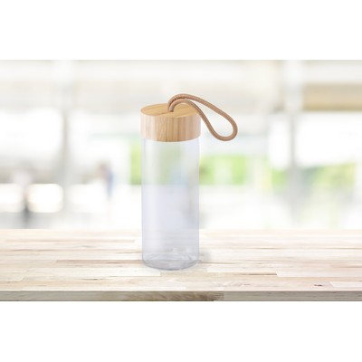 Glass sports bottle 420 ml, bamboo lid, packed in coloured box