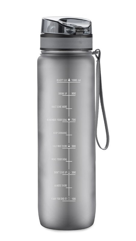 The MOTIVA motivational bottle has a capacity of as much as 1000 ml, so that you can have a large amount of liquid at hand. A motivational measure in English is printed on the wall of the bottle. With the use of this bottle, you can accurately track the amount of drunk water. Reaching for other sip of water becomes fun!