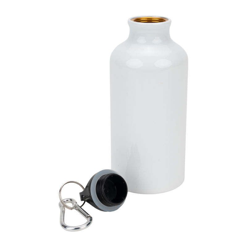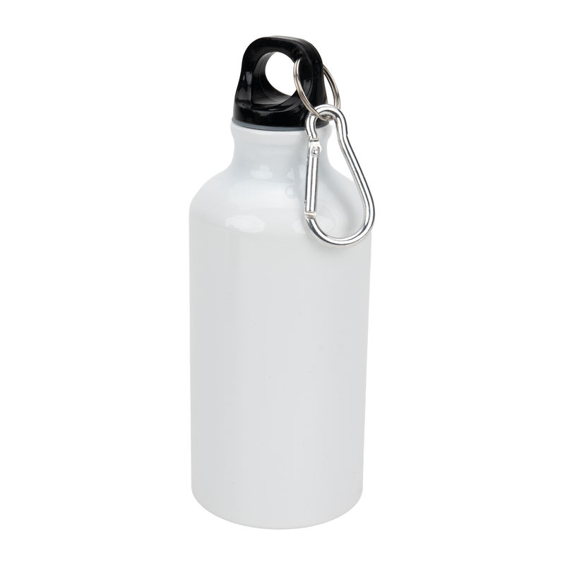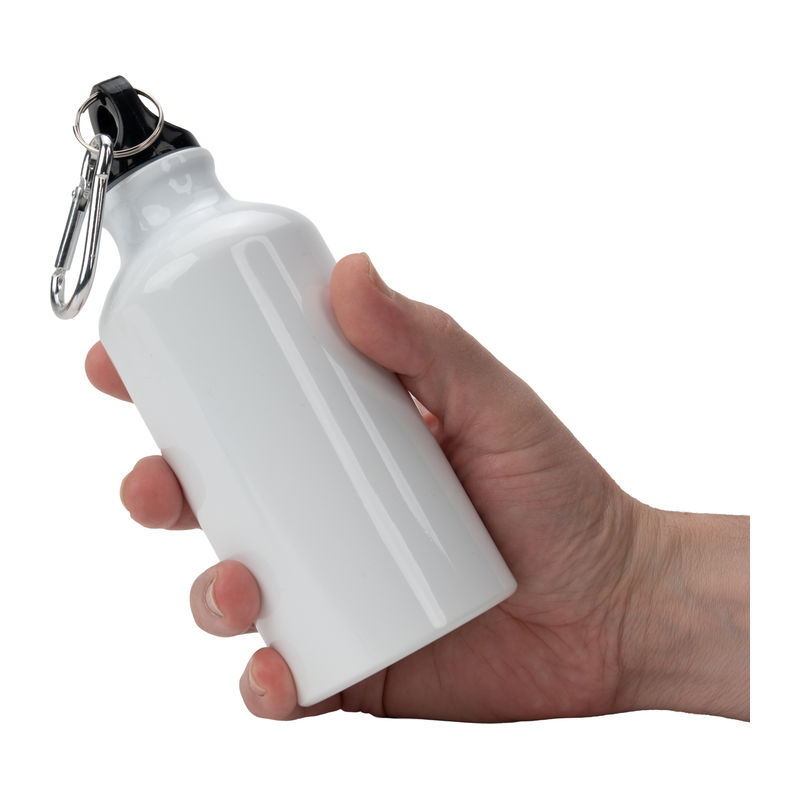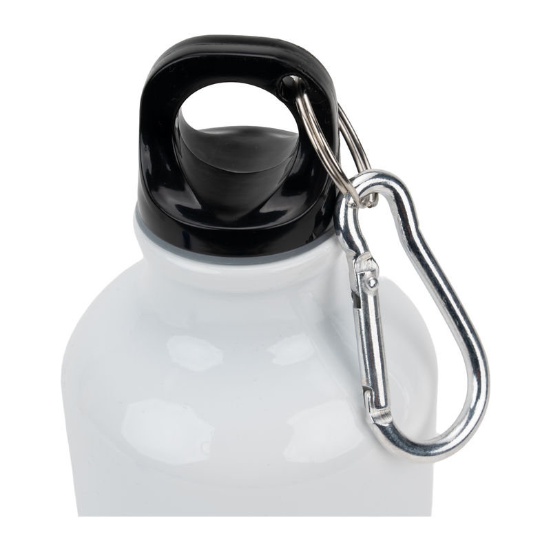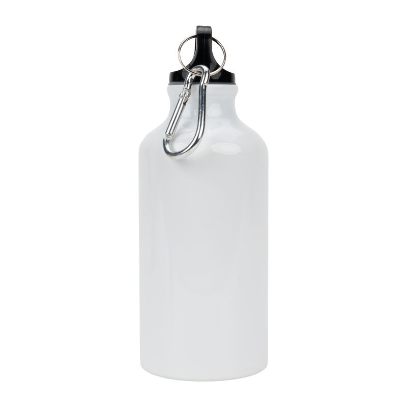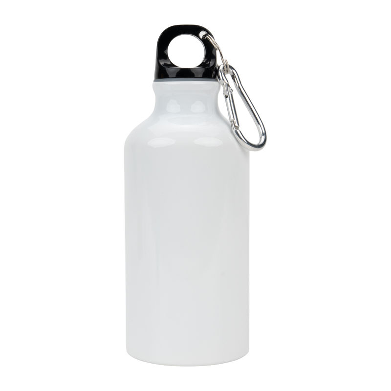Aluminium sublimation drinking bottle featuring a carabiner hook and a capacity of 400 ml.