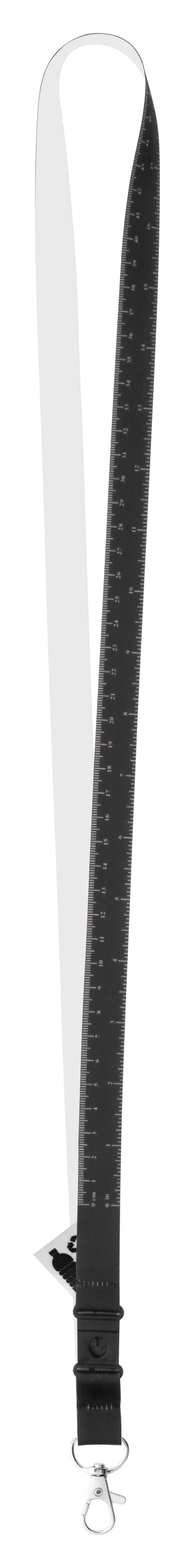 Custom made, 15 mm wide RPET lanyard with 100 cm tape measure and metal carabiner. With sublimation printed graphics on one side. MOQ: 100 pcs.