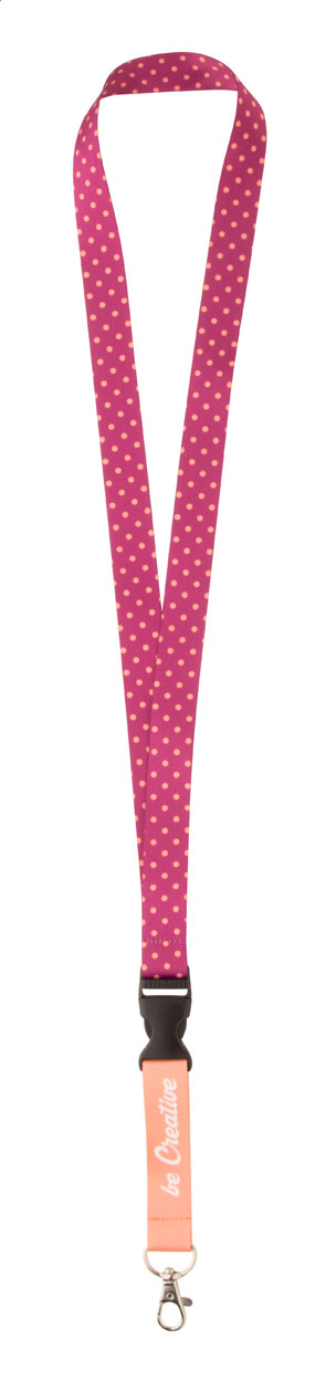 Custom made, RPET lanyard with detachable metal carabiner. With sublimation printed graphics on both sides. MOQ: 100 pcs.