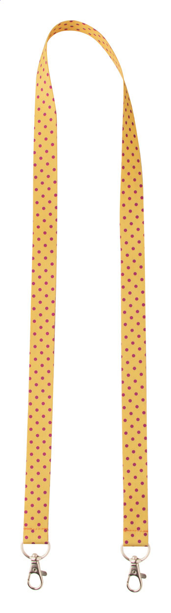 Custom made, RPET lanyard with 2 metal carabiners. With sublimation printed graphics on both sides. MOQ: 100 pcs.