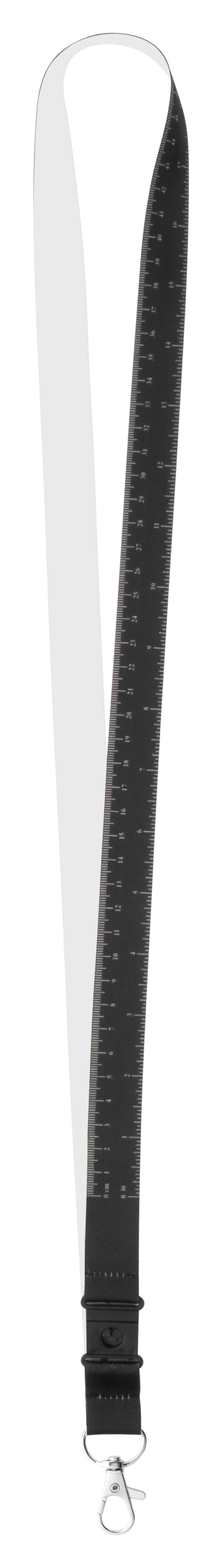 Custom made, polyester lanyard with 100 cm tape measure and metal carabiner. With sublimation printed graphics on one side. MOQ: 100 pcs.