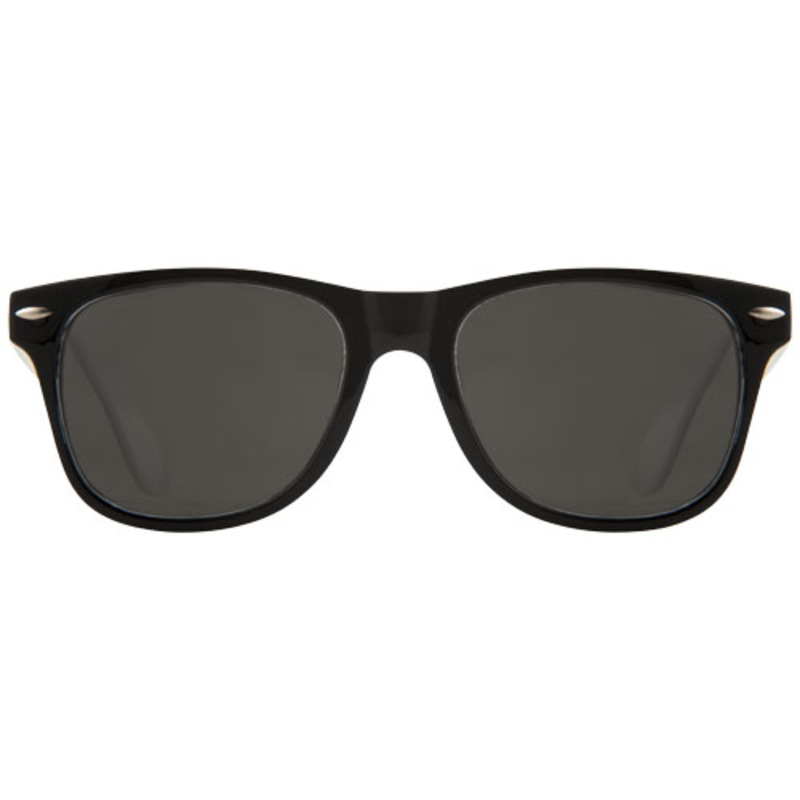 Retro design duo-tone sunglasses with inside pop-up colour finish and category 3 black lenses. Compliant with EN ISO 12312-1 and UV400.