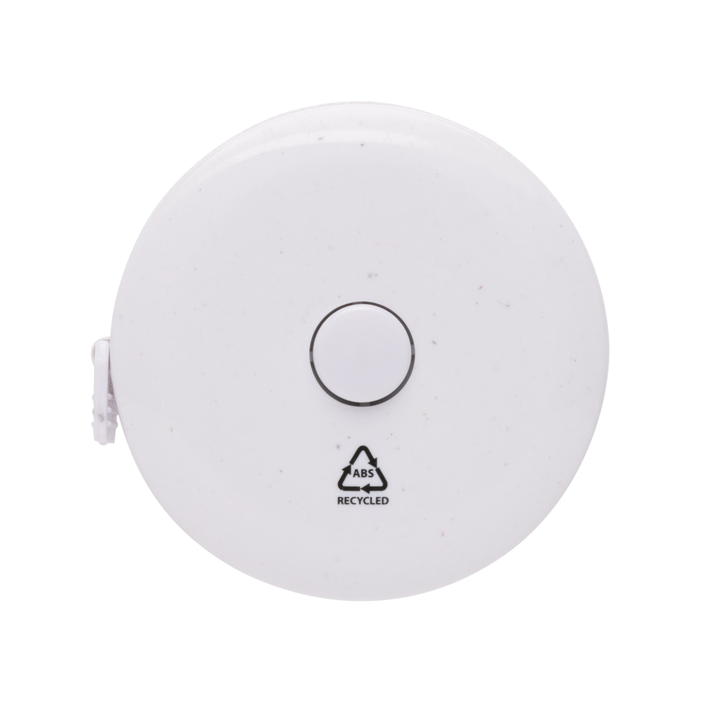 1.5m/60inch recycled plastic tape with return push button, for fitness and fashion. The case is made out of RCS certified recycled ABS plastic and fibreglass. Total recycled content: 64% based on total item weight. RCS certification ensures a completely certified supply chain of the recycled materials. The tape is 8mm wide and retractable by button. Packed in FSC® mix packaging.