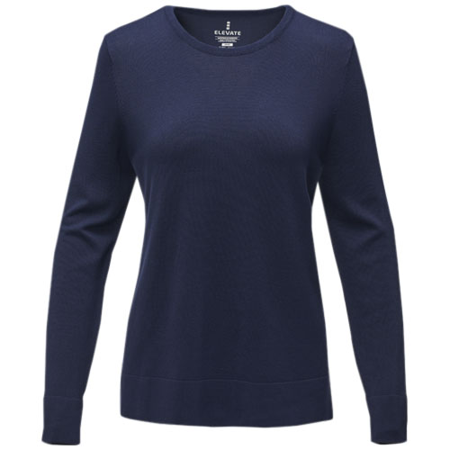 The Merrit women's crewneck pullover – a fusion of timeless style and comfort. Its classic crew neck is complemented by flat knit rib details on the collar, cuffs, and bottom hem, providing a sophisticated charm suitable for any occasion. Made from viscose and nylon blend in a 12-gauge flat knit, it offers a blend of softness, durability, and a lightweight feel. Elevate your wardrobe with the versatile Merrit pullover that embodies elegance and quality. This pullover is designed with a fitted shape for a feminine look.