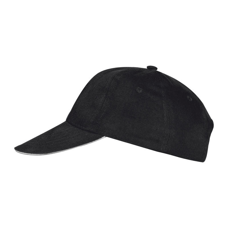 6-panel sandwich baseball cap made of heavy-brushed cotton, available in various colours, with a matt silver metal snap closure. Your logo will be embroidered or printed on the front.