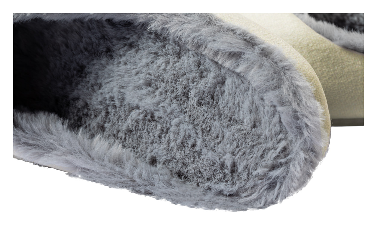 Unisex cotton slippers with plush polyester lining.