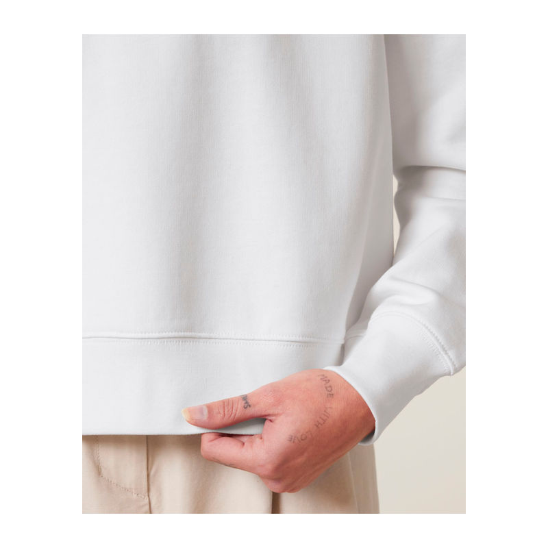 Premium women's hoodie with dropped shoulders, refined details for a sleek look. Made from 100% organic cotton, 300 g/m² fabric, ideal for custom designs.