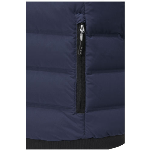The Macin women's insulated down jacket – a perfect blend of style and warmth. Made of 164 g/m² 750T woven double layer pongee fabric in polyester. The matte fabric in combination with heat seal quilting gives the jacket a modern look while enhancing the overall insulation. Embrace eco-consciousness with RDS certified recycled down insulation of recycled down and recycled feathers, providing warmth without compromising on ethical standards. With an inner storm flap, chinguard, and flat knit elasticated rib cuffs, this jacket offers maximum protection against the elements. The front pockets with zipper closure add convenience and functionality. Embrace both style and ethical values with the Macin jacket, perfect for any outdoor adventure or daily wear. This jacket is designed with a fitted shape for a feminine look.