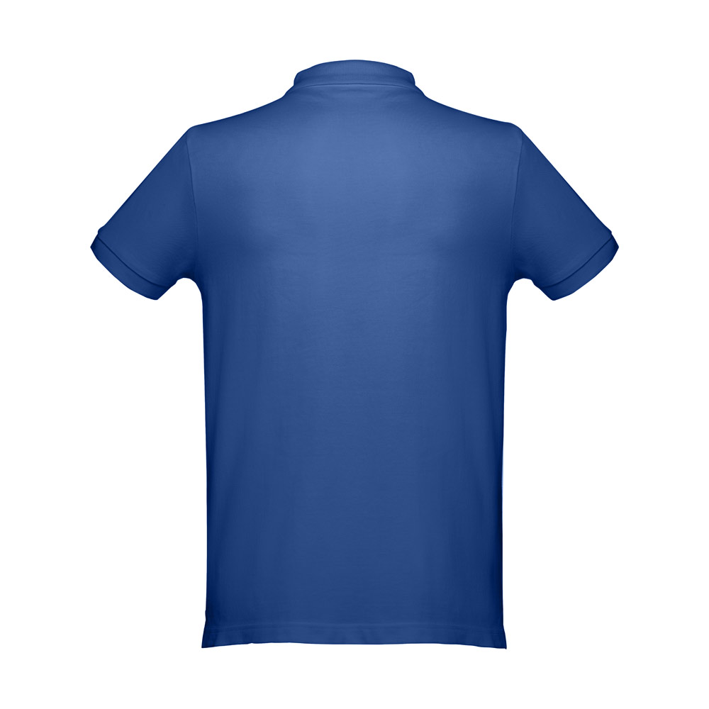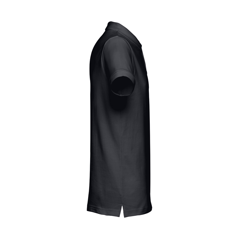 100% carded cotton pique men's short sleeve polo (195 g/m²) (colour 183: 85% cotton/15% viscose). With elegant collar and rib sleeves, with a piqué reinforcement collar. Reinforced placket with 2 matching colour buttons (extra button inserted in the inner seam). Modern cut with a single welted pocket on the chest. Cut and sewn piece with small side open with side vents at the hemline of the polo. Sizes: S, M, L, XL, XXL