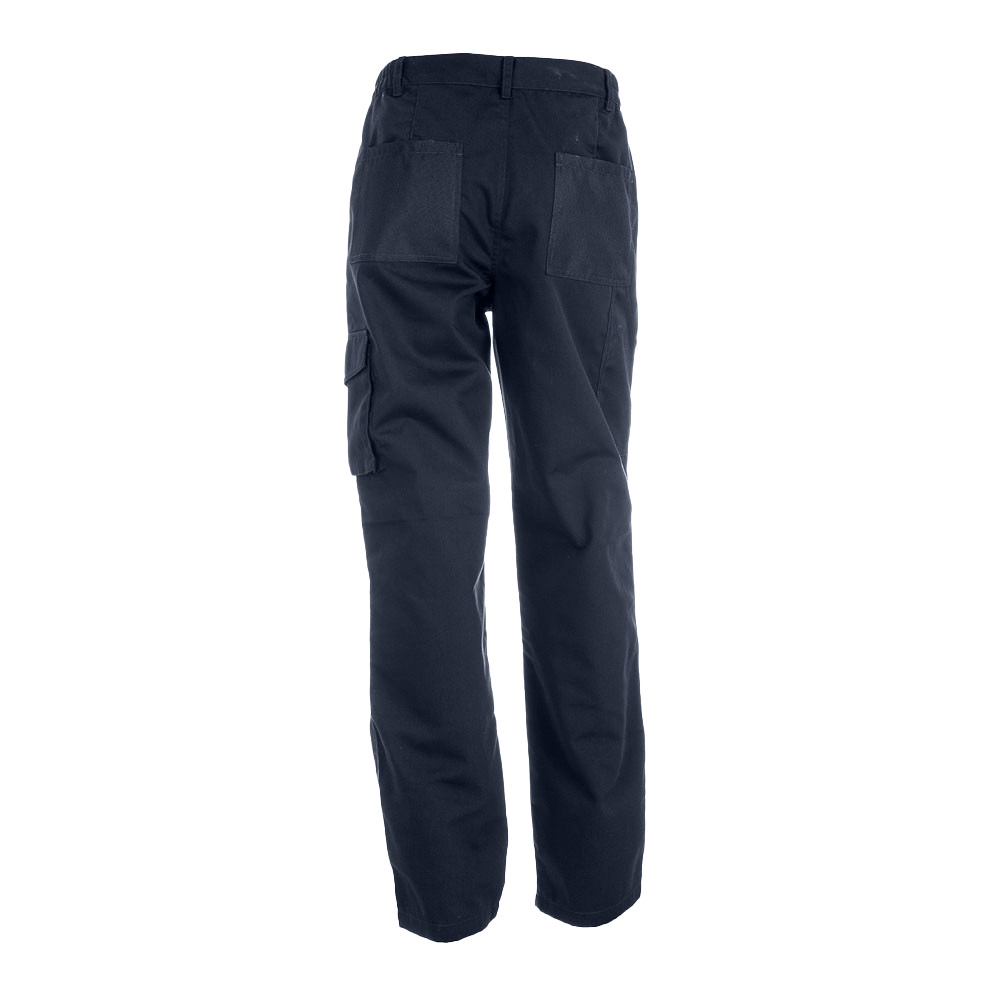 Men's trousers in 98% cotton and 2% elastane (240 g/m²). Contains 6 pockets: 2 side pockets with zip closure, 2 front pockets and 2 back pockets. Waist with elastic on the sides. Sizes: XS, S, M, L, XL, XXL