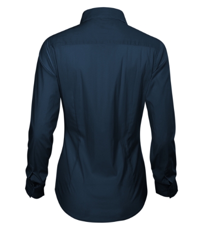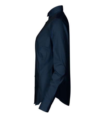 tailored fit cut with side seams, back part with a double yoke, breast and waist darts, two-piece shirt collar, front parts finished by placket, long sleeves with angled cuffs and 2 buttons, pearl buttons in the shell fabric colour (1 spare extra), curved bottom edge