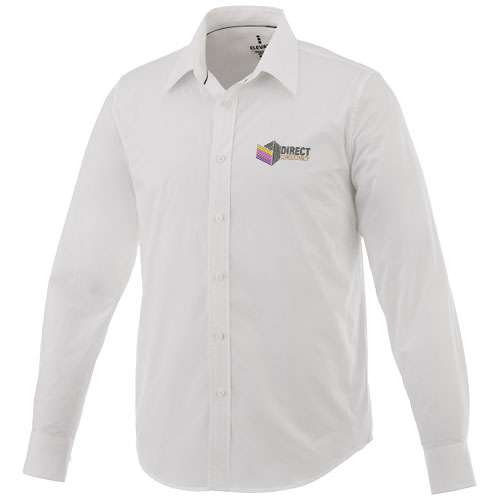 The Hamell long sleeve men's stretch shirt – an ideal combination of style and comfort. This woven shirt features a lightweight poplin fabric of 97% cotton and 3% elastane. Poplin fabric is known for its tight weave, which provides exceptional durability while maintaining a soft and smooth texture against the skin. This means that the Hamell shirt is not only comfortable to wear but also resistant to everyday wear and tear, ensuring long-lasting use. The added stretch provides ultimate freedom of movement, ensuring optimal comfort throughout the day even more. Its hidden button-down collar adds sophistication while maintaining a clean look.