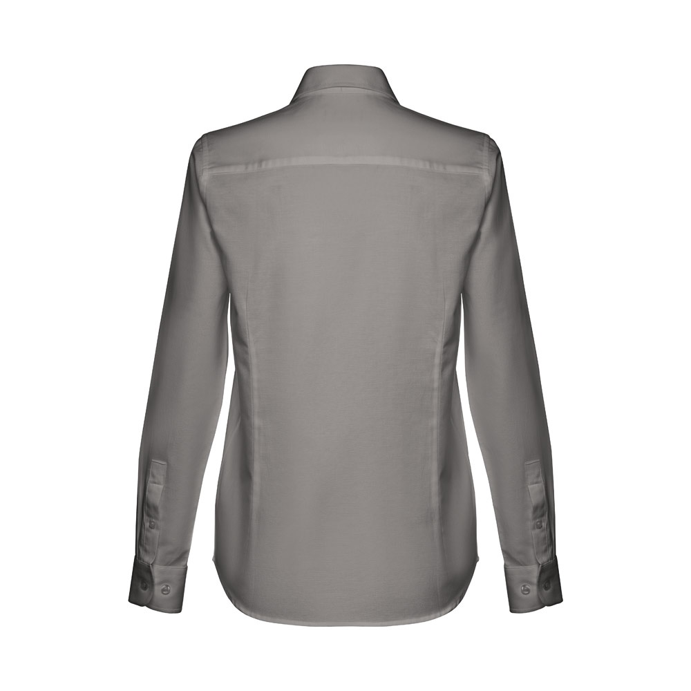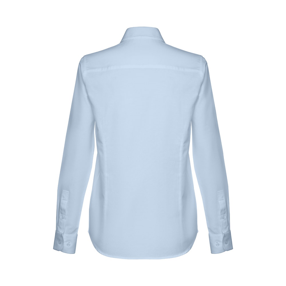Long-sleeved oxford shirt for women in 70% cotton and 30% polyester (130 g/m²). Contains adjustable cuffs with 2 buttons and sleeve with 1 pleat. Fitted shirt with 2 darts on the front and back, and placket with 7 pearl coloured buttons. Sizes: S, M, L, XL, XXL