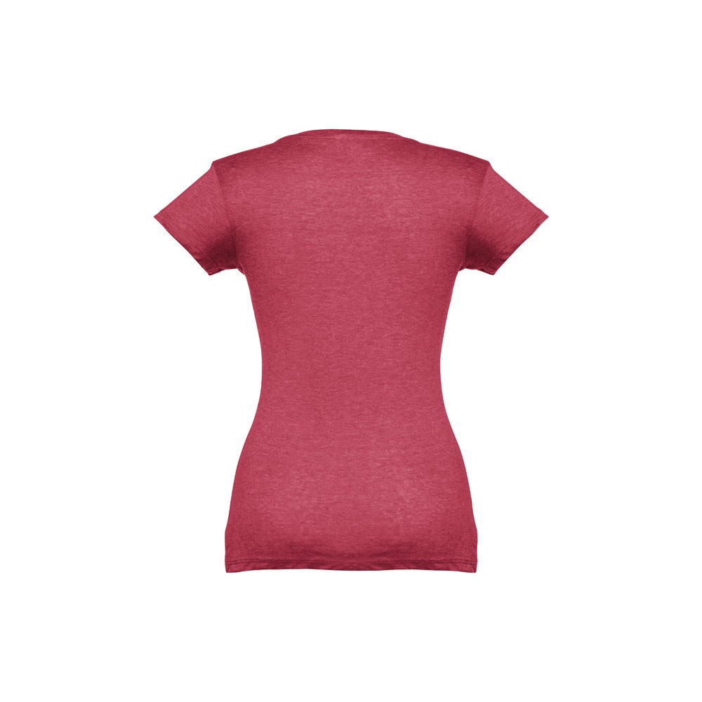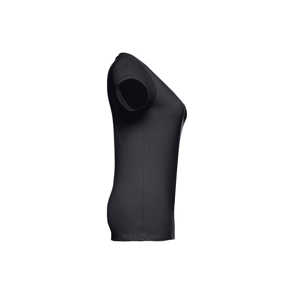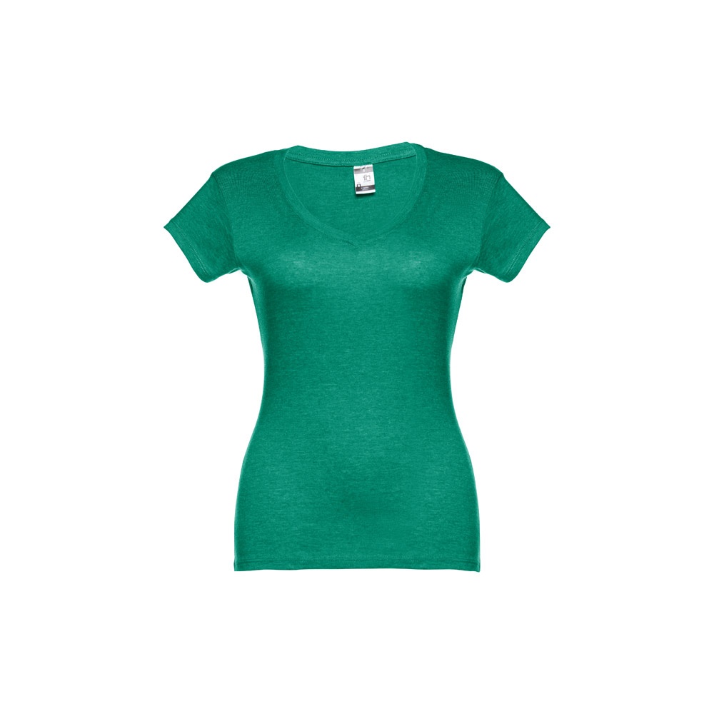 100% cotton women's jersey fitted t-shirt (150 g/m²) with carded cotton yarn (colours: 194, 195 and 199: 60% cotton/40% polyester). Contains a jersey collar with overlaid" V" neckline, reinforced inside with jersey ribbon. Piece cut and sewn with double seam on the sleeves and hemline Sizes: S, M, L, XL, XXL