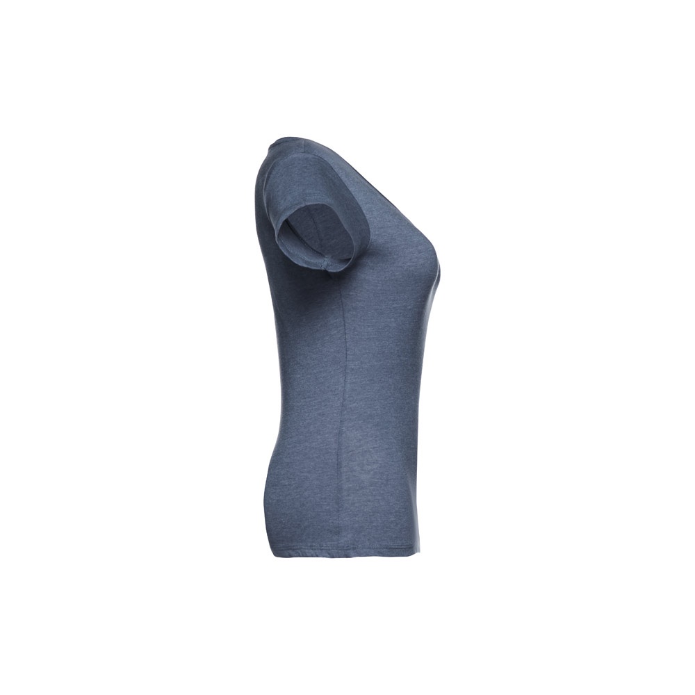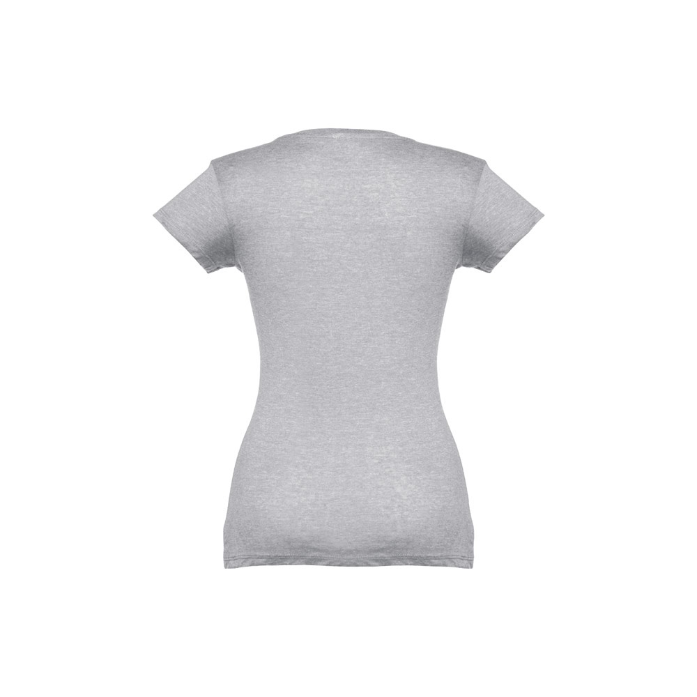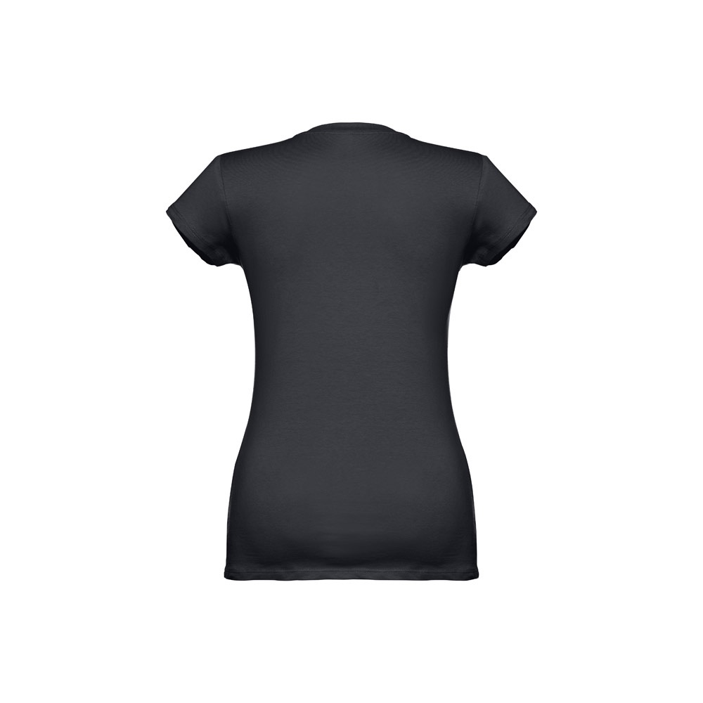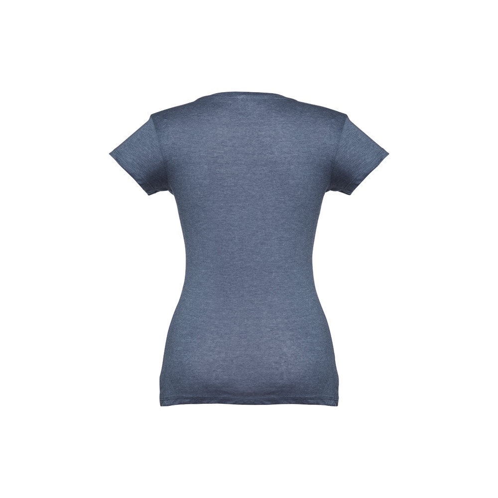 100% cotton women's jersey fitted t-shirt (150 g/m²) with carded cotton yarn (colours: 194, 195 and 199: 60% cotton/40% polyester). Contains a jersey collar with overlaid" V" neckline, reinforced inside with jersey ribbon. Piece cut and sewn with double seam on the sleeves and hemline Sizes: S, M, L, XL, XXL