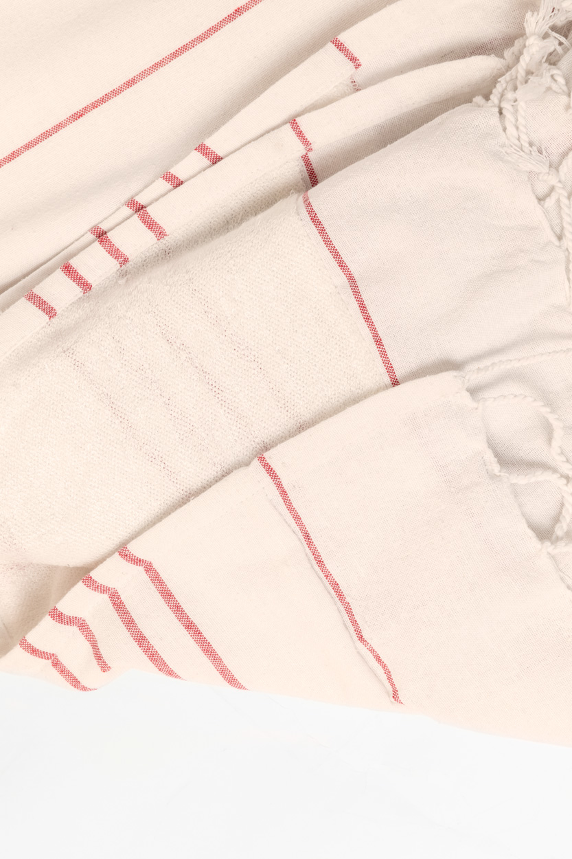 Two-tone pareo beach towel in polycotton. Blend of 50% organic cotton and 50% polyester, 280 g/m².