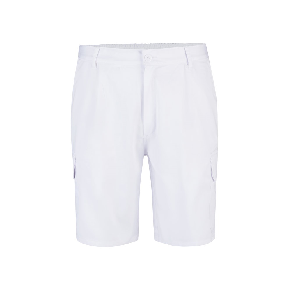 Bermuda shorts in multi-pocket twill (200g/m²), cotton (35%) and polyester (65%). With elasticated waistband and six pockets (2 French pockets, 2 side pockets and 2 back bellows pockets). Size: 36, 38, 40, 42, 44, 46, 48, 50, 52, 54, 56, 58, 60