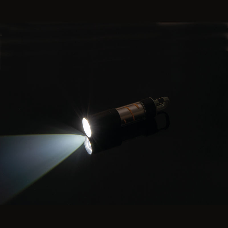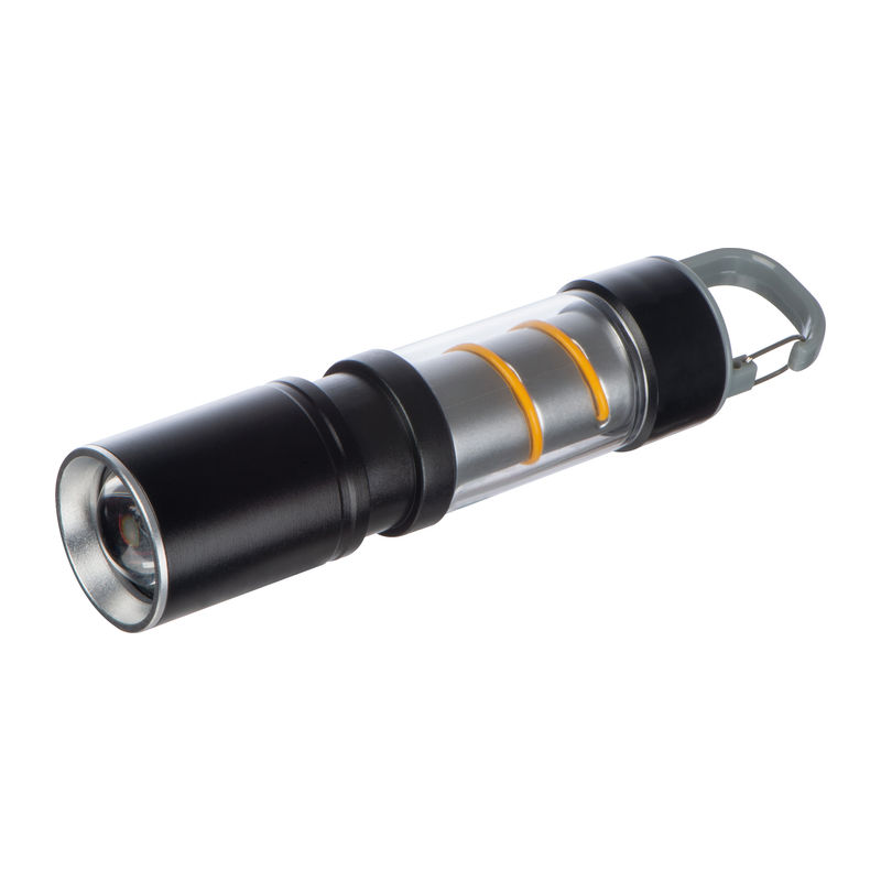 Rechargeable torch featuring a clip and 500 mAh capacity. Supplied with a Type-C cable. Offers an adjustable light cone, top light, flashing function, and illuminated body. Versatile and practical for all situations.