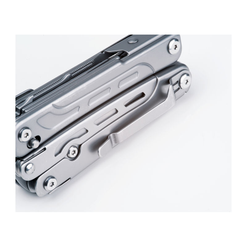 CrisMa 15-piece multifunctional tool made of stainless steel and various tools such as pliers, knife, saw, scissors, screwdriver etc. and practical clip for attaching to the belt. This item is supplied in a black box. Your logo will be engraved on the handle.