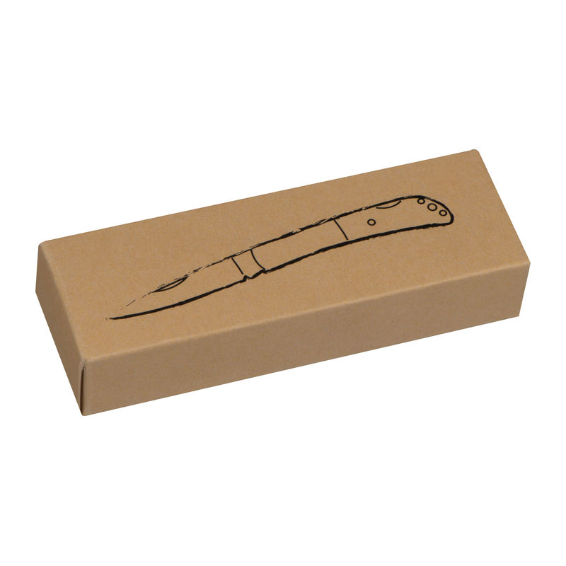 High-quality, foldable pocket knife made of stainless steel with safety lock and wooden handle, on which your advertisement is engraved.