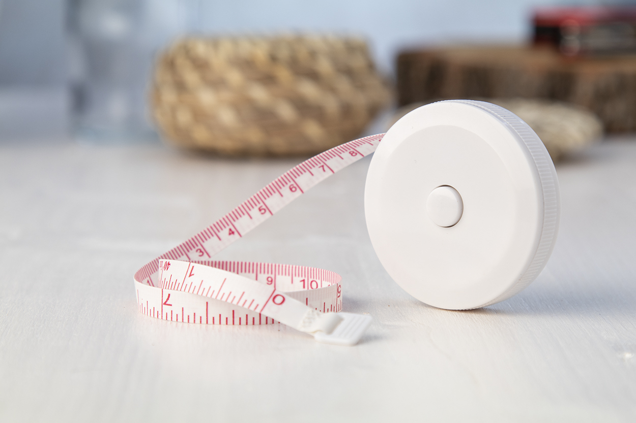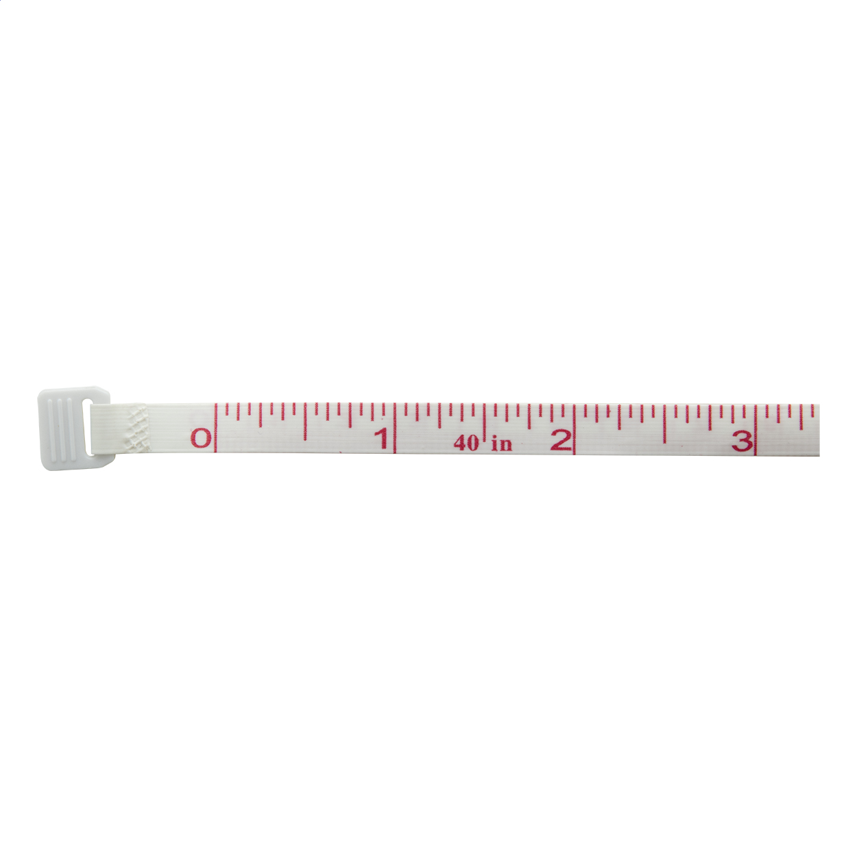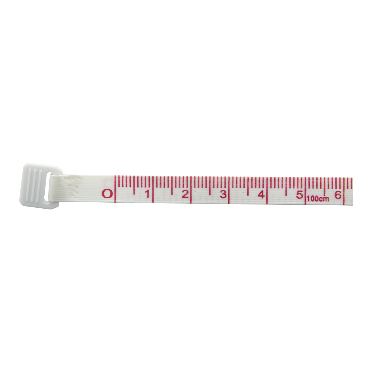 Plastic tailor's tape measure with push button lock, 1 m. With cm and inch scales.