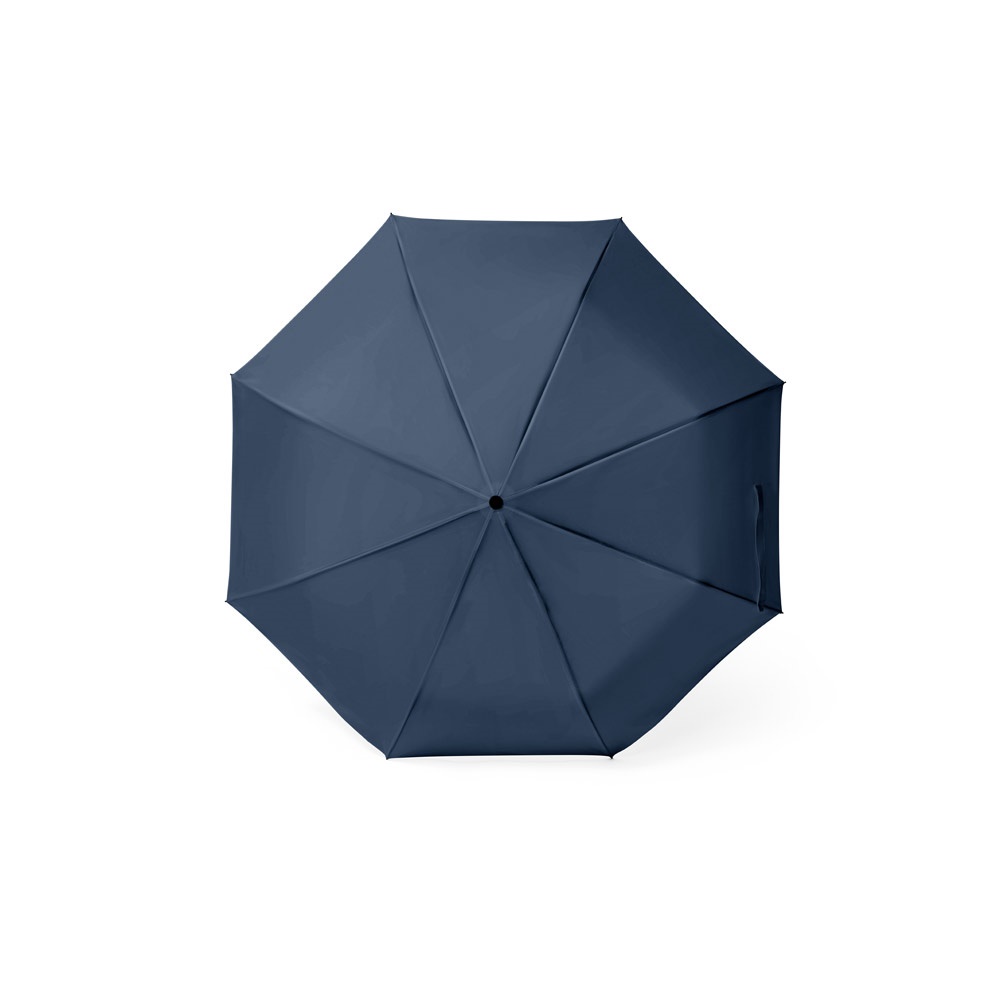 21'' foldable umbrella in recycled polyester (100% rPET) 190T pongee. Fibreglass ribs, metal shaft and handle in recycled ABS. The manual umbrella is also windproof, and is foldable in 3 sections. Supplied in bag. ø980 x 280 mm | Bag: ø50 x 230 mm