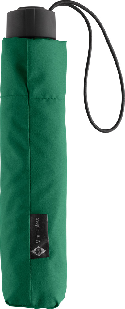 Easy to handle thanks to sliding safety runner, windproof features for higher frame flexibility and stability in windy conditions, Soft-Touch handle with elastic loop and promotional labelling option