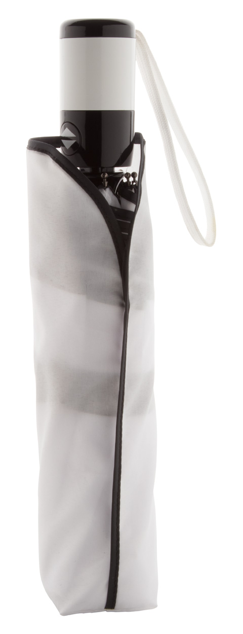 Full automatic (open/close), windproof folding umbrella with 8 panels. With metal shaft, metal/fibreglass frame, matching colour pouch and plastic handle. 190T pongee.