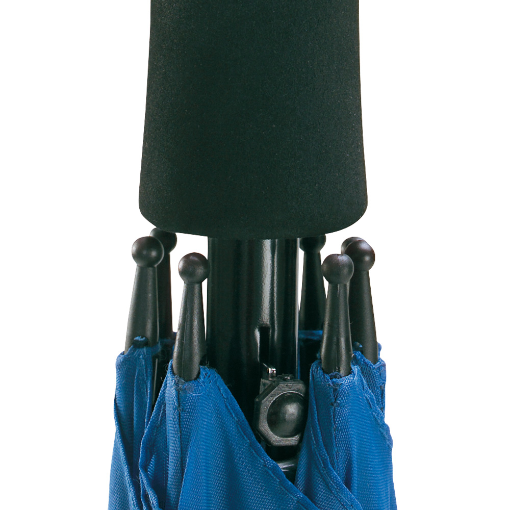 Convenient automatic function for quick opening, windproof features for higher flexibility and stability in windy conditions, flexible fibreglass ribs, straight soft handle, higher corrosion protection due to galvanized steel shaft, large, accommodating diameter