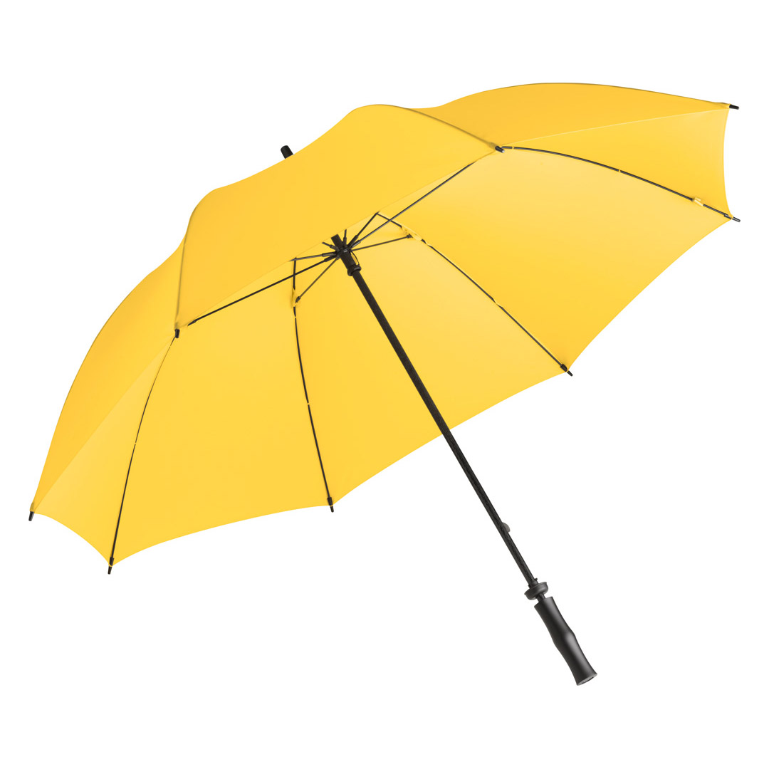 High-quality windproof system for maximum frame flexibility in stormy conditions, flexible fibreglass ribs, sturdy fibreglass shaft, straight handle with promotional labelling option, plastic tip cup, large, accommodating diameter