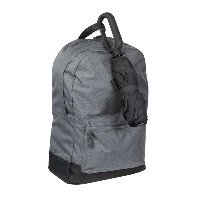 Elegant pocket umbrella featuring a rubberised carabiner handle for convenient attachment.