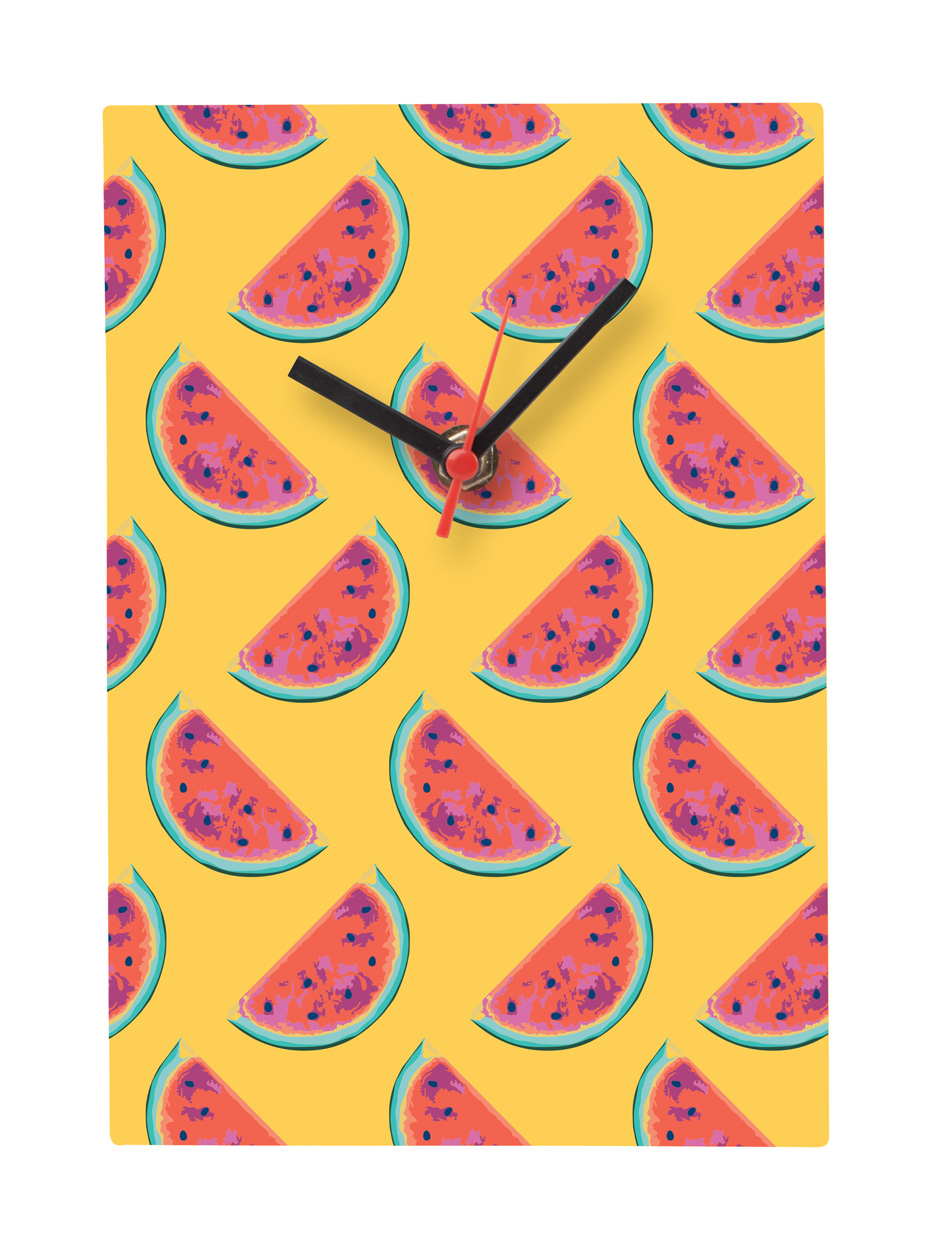 Custom made, rectangle shaped HDF wood wall clock with custom graphic. Operates with 1 AA battery, without battery. MOQ: 50 pcs.