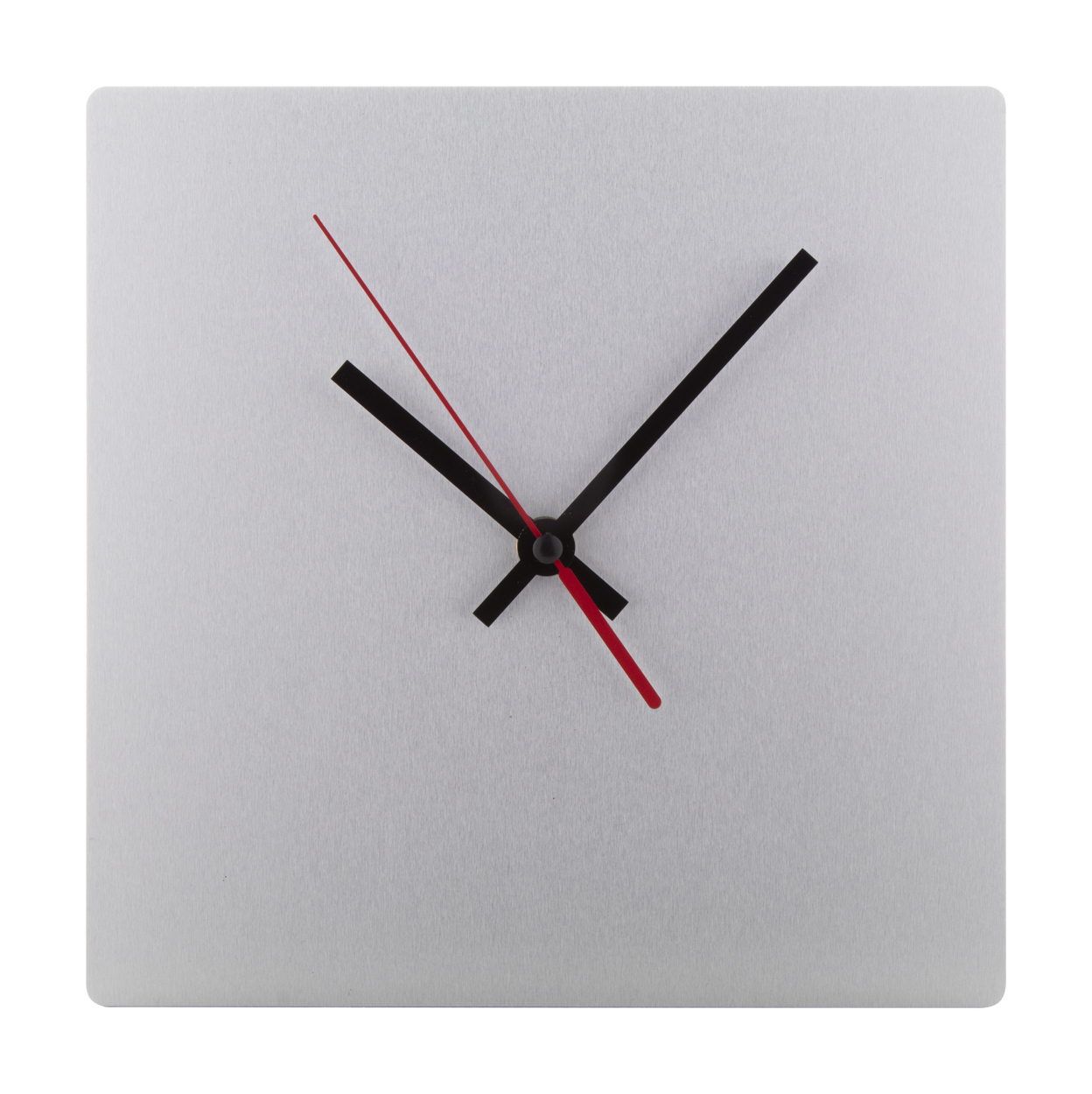 Custom made, brushed aluminium composite wall clock with custom graphic in square shape. Operates with 1 AA battery, without battery. Price includes UV LED printing. MOQ: 25 pcs.