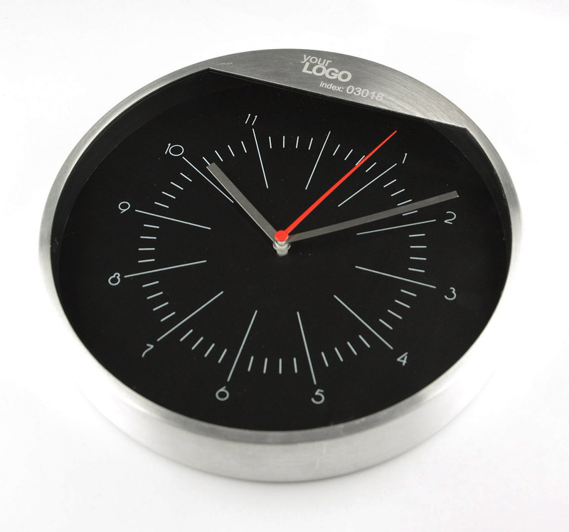 Metal wall clock with a simple, elegant design. Logo might be engraved over the clock's face. It requires 1pc of AA battery that is not included in the article.