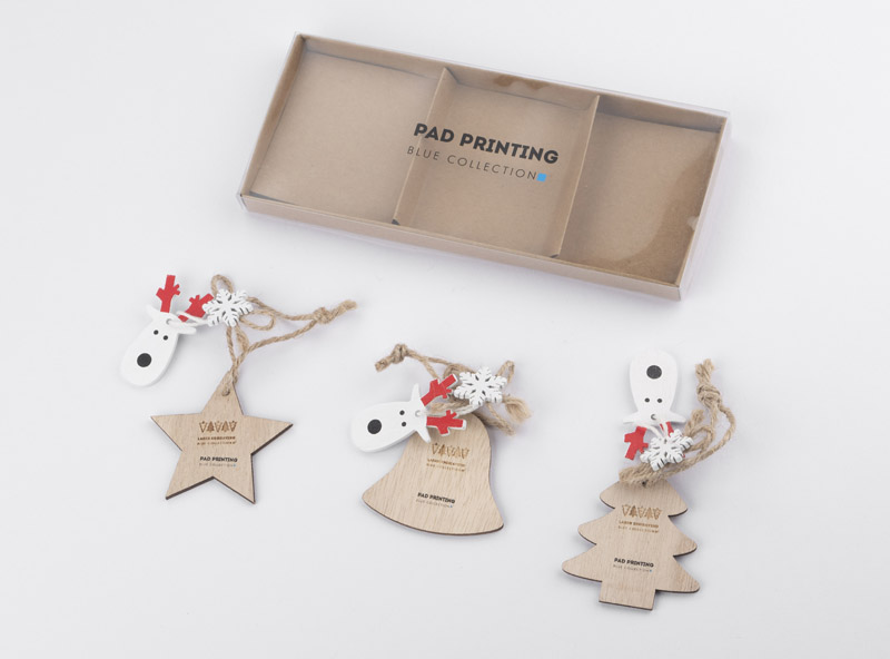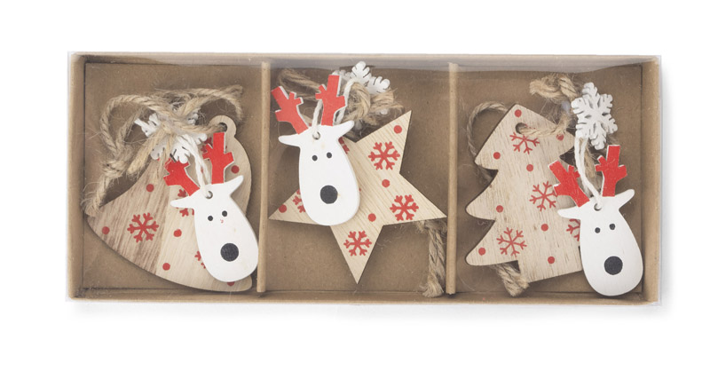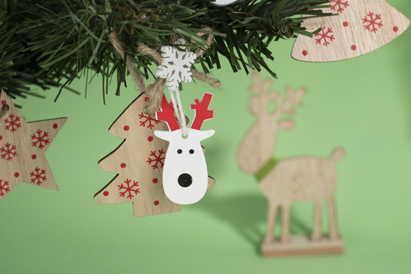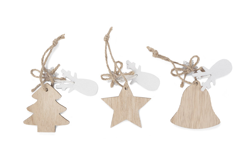 The FERI set consists of 3 pieces of wooden hangers of various shapes: star, Christmas tree and bell. Wooden christmas hangers perfectly fit into the ecological trend, matching almost any interior.