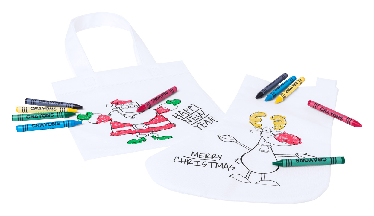 Non-woven, colouring Christmas stocking with 5 crayons, 80 g/m².