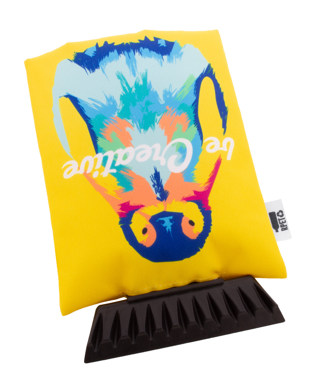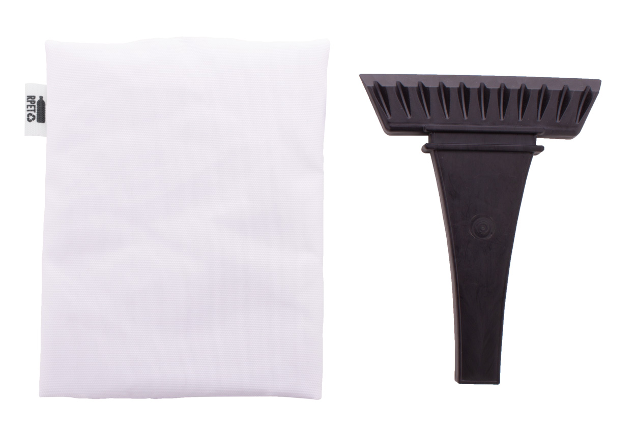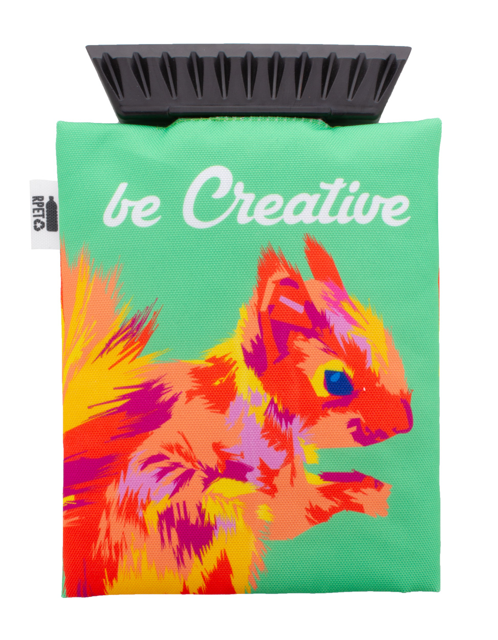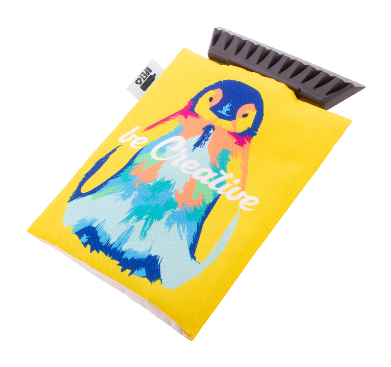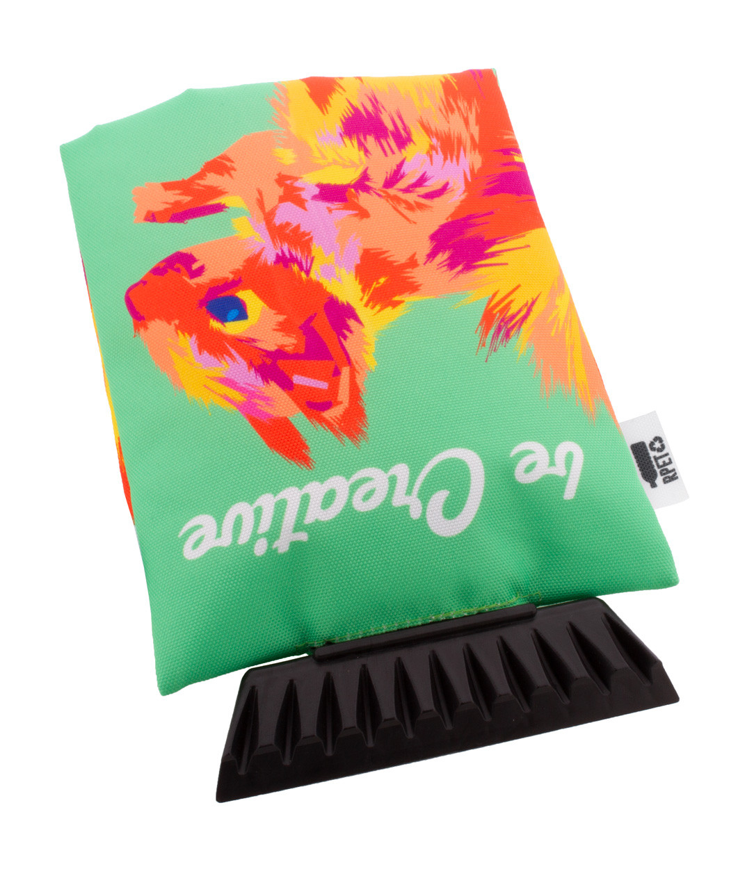 Custom made plastic ice scraper with 600D RPET polyester glove. Price includes all over sublimation printed graphics. MOQ: 50 pcs.
