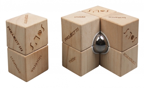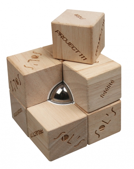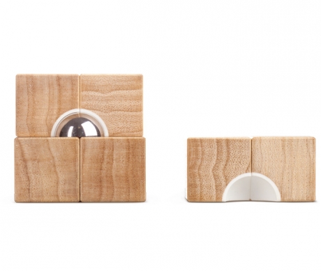 A new take on a stress toy — eight wooden cubes magically gravitate to the central ball made of steel. Magnetic forces working between wood and metal? It’s a real wonder.