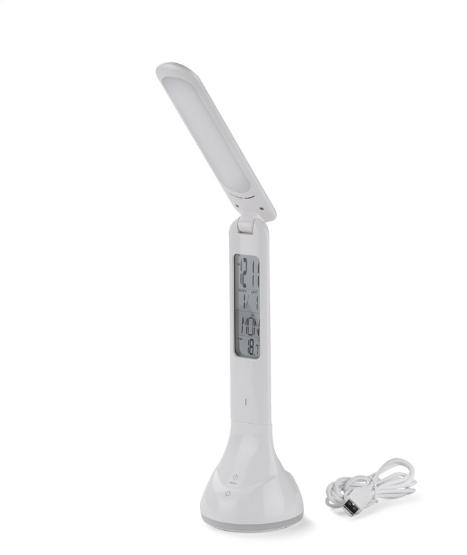Unique desk lamp with a built-in weather station. The lamp has three levels of light intensity so that your desk will always be adequately illuminated. A special filter located by the LEDs makes the light more natural and helps protect your eyes. Variable, multi-colour backlighting (RGB – red, green, blue) of the stand gives it a modern look and creates a unique atmosphere. ENLI owes its functionality to the built-in 1200 mAh battery – the lamp can be set anywhere without worrying about unnecessary cables. The built-in weather station has the following functions: time, date, day of the week, temperature, alarm, and birthday reminder.