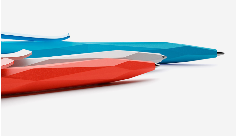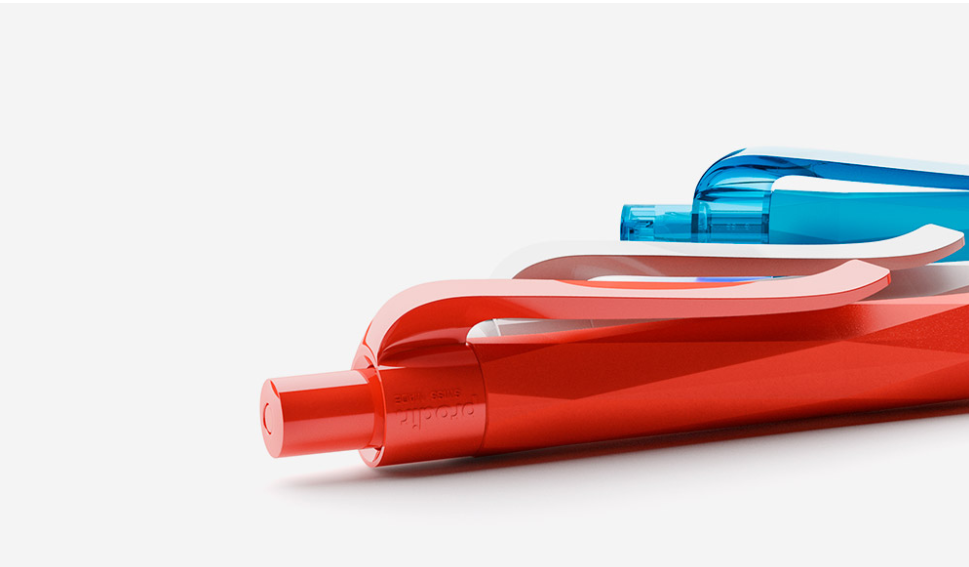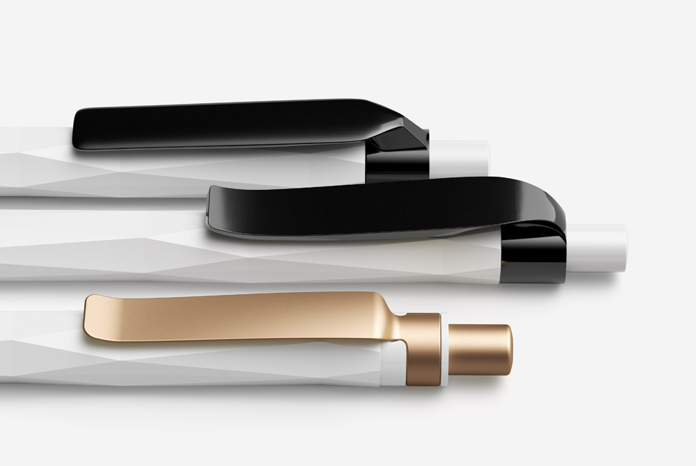 In the “Stone” version, standard with metal clip in five satin metal finishes: Push button in chrome or satin finish metal as well as in plastic. Casing in eight matt lacquered colours, four metallic tones and four colours inspired by minerals. Clip holder for the metal clip in polished or transparent plastic. Printing surface on the clip.