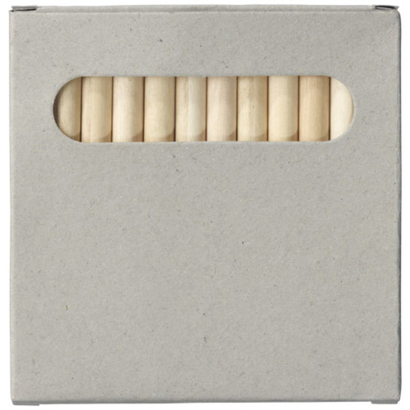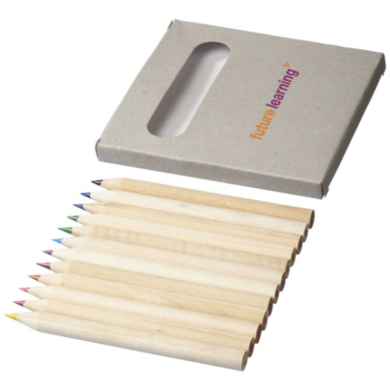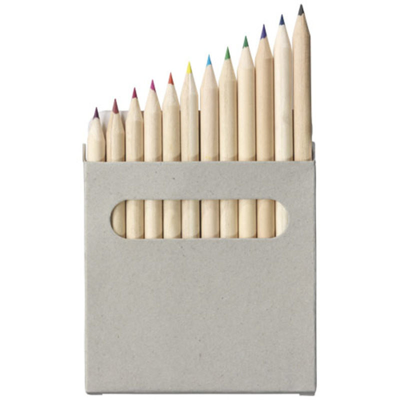 12 coloured pencils inside a paper box.. Decoration not available on components.